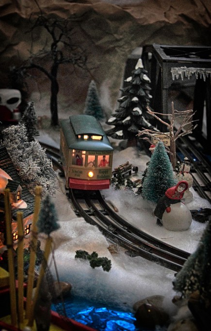 The Village Trolley Line has a long history of serving the Village of Make Believe. The line originally used a mule drawn trolley to connect downtown Make Believe with The Whimsicle & Northern R.R. Being an innovator, the then village franchised owner of the trolley line,S.C. Claus, turned to electricity to power the trolleys as soon as electricity became available. In the late 1940s, thinking that buses were the way to go, S. C. turned over the franchise to the Village. The Village, not wanted to lose the charm of the trolleys, opted to keep the trolleys running.