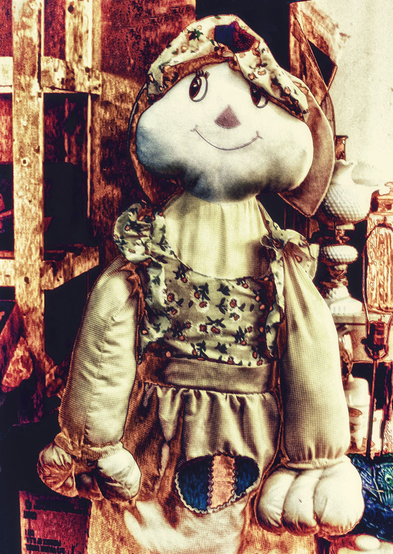 It seems that every junk shop has a preponderance of dolls and stuffed stuff. I admit, it is hard to past by even one of them and not take a shot or two— PeeWee Herman, Howdy Doody, Rosie the Riveter, Sargent Preston of Royal Mounties, to name just a few who have made it into my image collection. Here are but a randomly selected few of those photos: