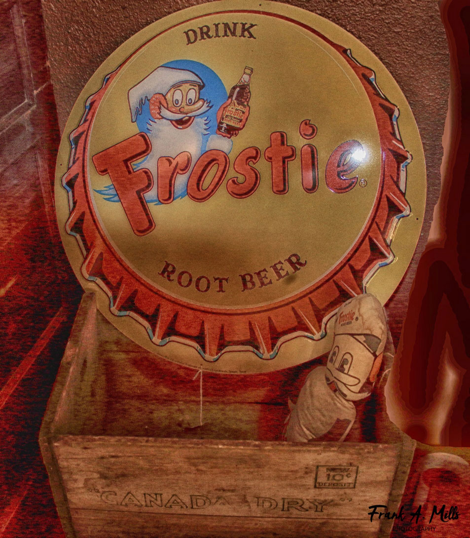 Mr. Frosty, by the way, was found next to a Frosty Bottle Cap Soda Sign in a Canada Dry wooden box. Someone undoubtedly was a Frosty fan. Still it is hard to imagine why a Frosty fan would be relegate Mr. Frosty and sign to a Canada Dry box. I know I wouldn't.