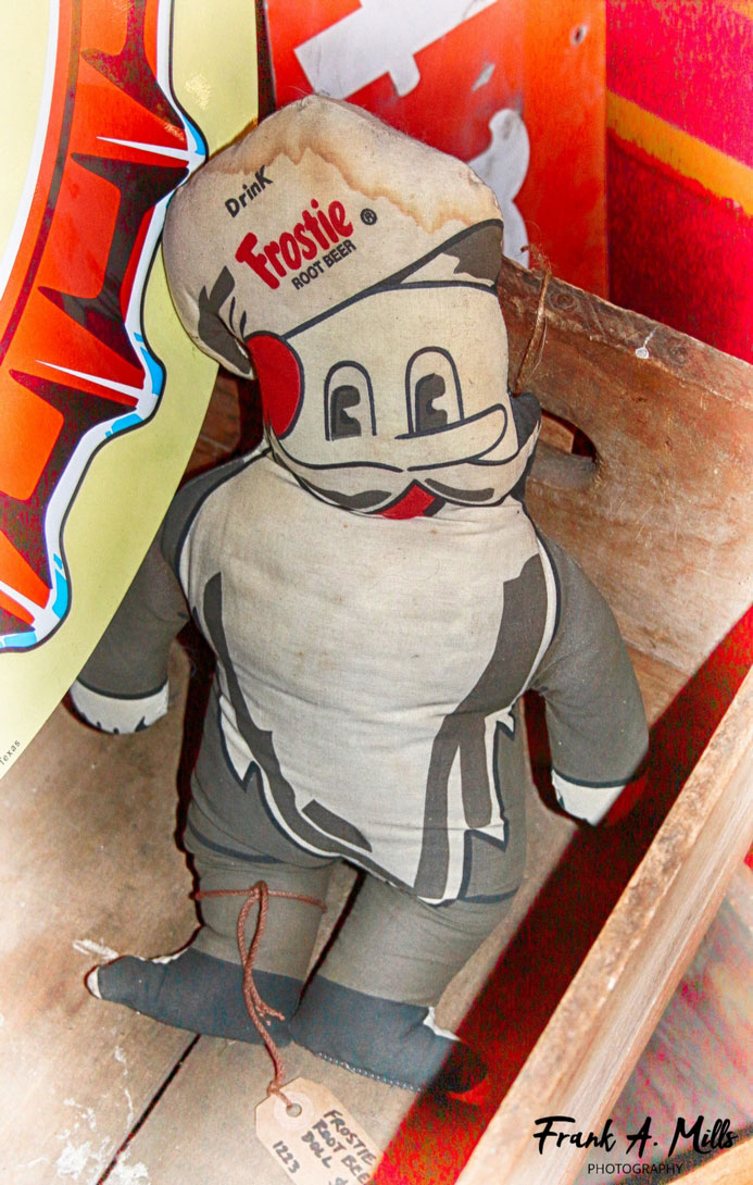 Now you may be wondering how Mr. Frosty came to be found in Granbury, Texas? That we will never know. Frosty Root Beer does however have a Texas connection, after changing hands a couple times, the Frosty brand was sold to Leading Edge Brands of Temple, Texas (2000 - 2009). Yet, our stuffed Mr. Frosty doll dates to the early 60s, long before Frosty Root Beer showed up in Texas.