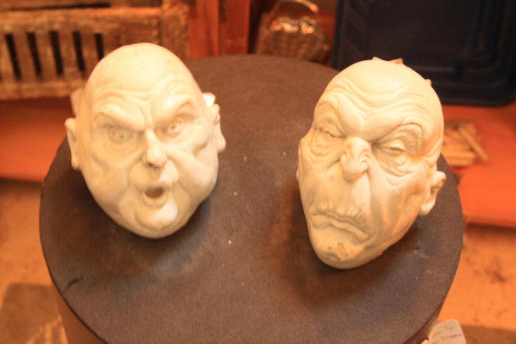 Lately I have become intrigued by what can be done story-wise mannequins and the haberdasher's head. (One such example is the "Millinery" interactive page on this website. Requires up to date browser.) This means that whenever I enter a junk or antique shop I am search of suitable heads and mannequins.