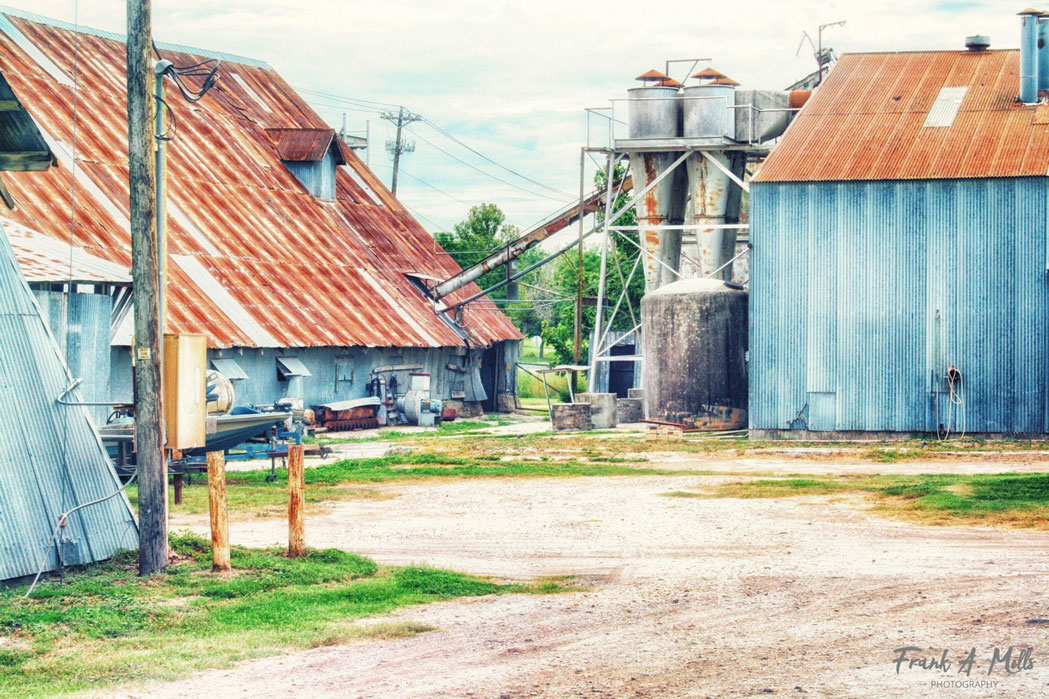 Sometimes the rust is on the outside, like her on the corrugated roof of the old Elgin Cotton Seed Mill (no longer in business):