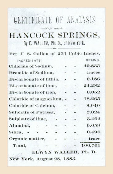 Advertising the mineral content of Hancock Springs