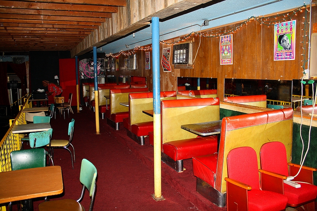 At first the café is just that, a café. In 1947 Holmes moved next door (his original purchase included four buildings); what will in time become the “Kovac Room” is nothing more than an field behind the building, with a stage, some tables and chairs, “all painted blue,” Faye recalls. It wasn’t until around 1950 that the space became enclosed. Not until Holmes returned from Alaska in 1965 did it become the “Kovac Room;” named after Ernie Kovacs whom he claimed to have met while working as a cook in Alaska.